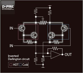 • مضخمات الصوت الأولية للميكروفونات D-PRE، مع دارة دارلينجتون العكسية