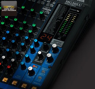 سواء في الاستخدامات الموسيقية أو غير الموسيقية، تُضيف معالجة المؤثرات اللمسة الاحترافية والنعومة النهائية للمزيج الصوتي. تتميّز طرازات MG X / XU بوجود معالج SPX الرقمي المتعدّد المؤثرات الشهير من ياماها، والذي يوفّر مجموعة شاملة من 24 مؤثرًا رقميًا قابلًا للتحرير — مثالية لتعزيز الصوت، سواء بإضافة العمق للمؤتمرات والخطابات أو بإضفاء ألوان جديدة وحيوية على أداء الفرق الموسيقية الحيّة. تُوسّع مؤثرات الصدى (Reverb) والتأخير (Delay) عالية الجودة المجال الصوتي بشكل واقعي وطبيعي مدهش، مما يمنح الصوت إحساسًا بالعمق والمساحة. كما يمكن توصيل دواسة القدم الاختيارية FC5 للتحكم بتفعيل المؤثرات أو إيقافها بسهولة أثناء الأداء. (ينطبق ذلك على الطرازات: MG10X / 10XU / 10XUF / 12X / 12XU / 12XUK / 16X / 16XU / 20XU)