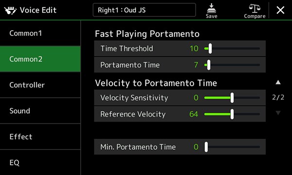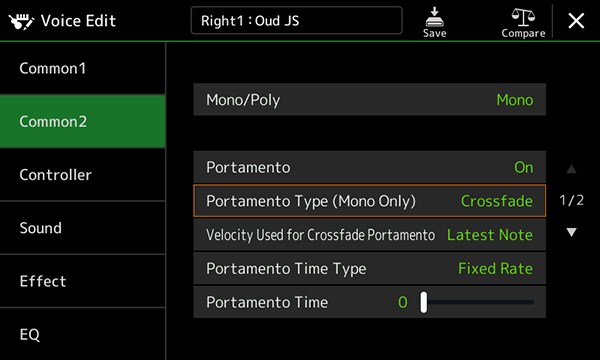- خاصية Crossfade Portamento مع خيارات للتحكّم بالسرعة والوقت