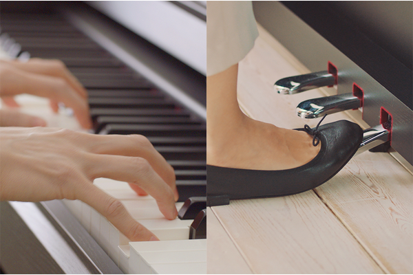 تجربة عزف تضاهي البيانو الأكوستيك الحقيقي والتحكم في دواسة نصف المثبط