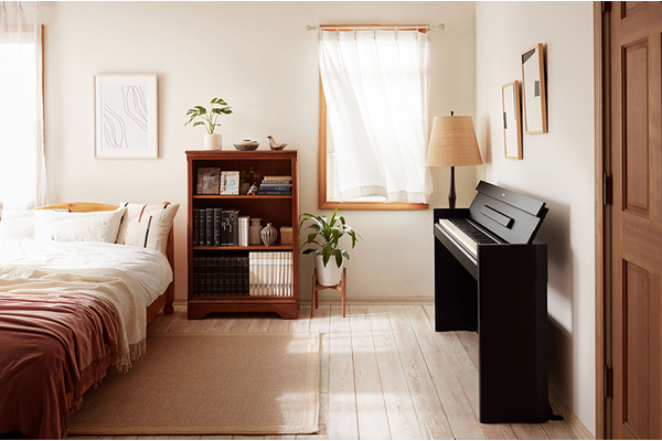 يتميّز صندوق البيانو بسماكته العملية التي تسمح لك بوضعه بأناقة في أي غرفة، كما أنه يمتاز بتصميم عصري يثري مساحة معيشتك بشكل رائع، ولاسيما عند إغلاق لوحة المفاتيح الذي يمنح الآلة طابعاً عملياً يتناغم بشكل انسيابي مع ما يحيط بها.