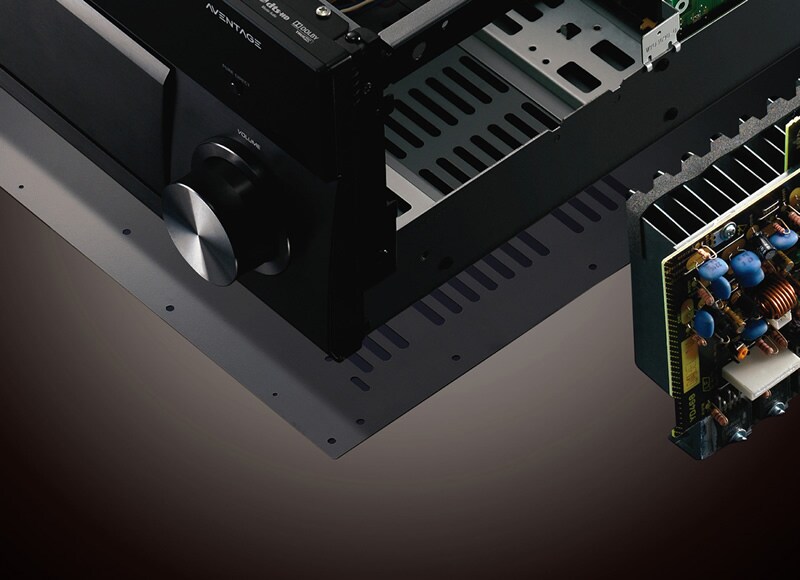 The RX-V3085 AV receiver features a sleek, clean design, with an elegant aluminium front panel. Even more importantly, the unit is exceptionally sturdy, with an interior reinforced with cross members in an H shape and supported by double-bottom construction. These ensure that installation stability is improved and chassis resonance is dispersed, effectively eliminating external vibration and maintaining the highest audio quality.