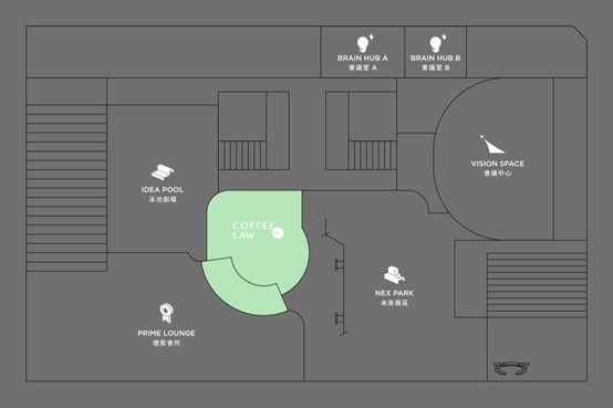 COFFEE LAW is adjacent to the NEX PARK Future Exhibition Zone and offers beverages and light meals.