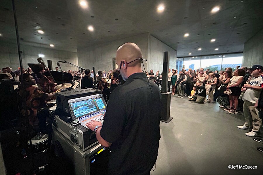 The production emerged from a long-standing friendship between Kamasi Washington and LACMA’s director. Planning began nearly a year in advance, with repeated on-site tests to evaluate the space’s evolving acoustics. Chad’s team coordinated closely with Washington’s production crew - conveniently located just blocks from Yamaha’s shop.