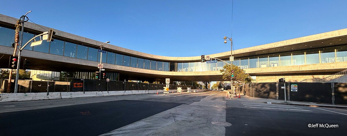 New David Geffen Galleries cross over Wilshire Blvd., Los Angeles, CA