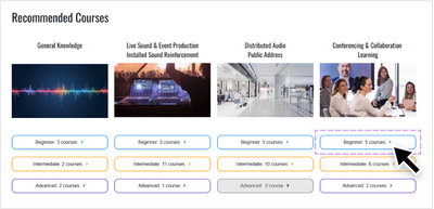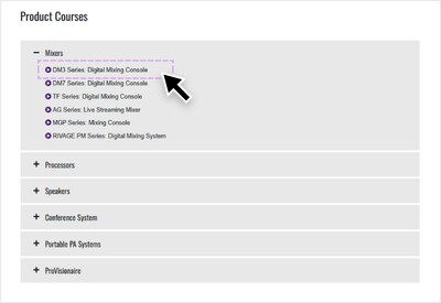 In the Product Courses section, courses are organized into categories that focus on individual product series. Simply select a course to jump to the training page.